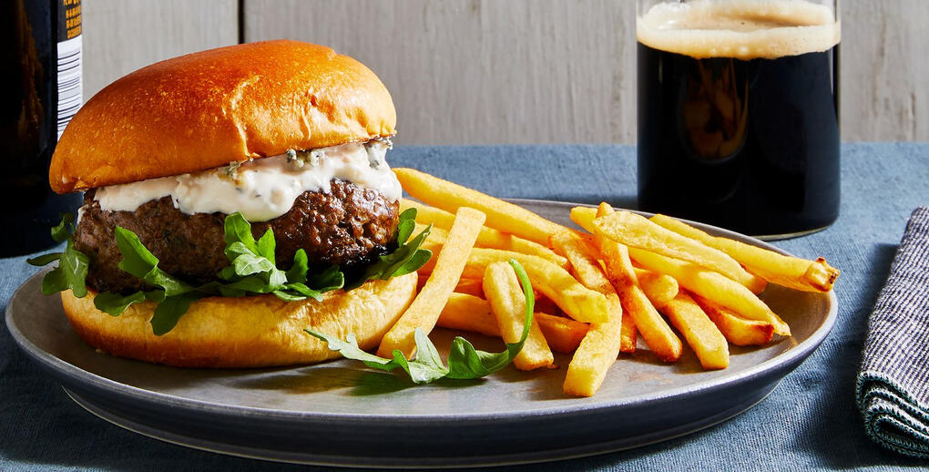 beer cheese, caramelized onions, moist black pepper beef, with mayonnaise & leafy greens. served on a pretzel bun.